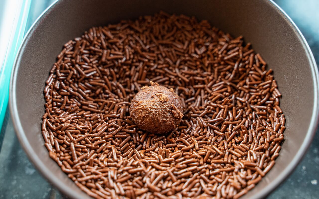 - Coat it with chocolate sprinkles on all sides by rolling it around in the bowl you previously set aside