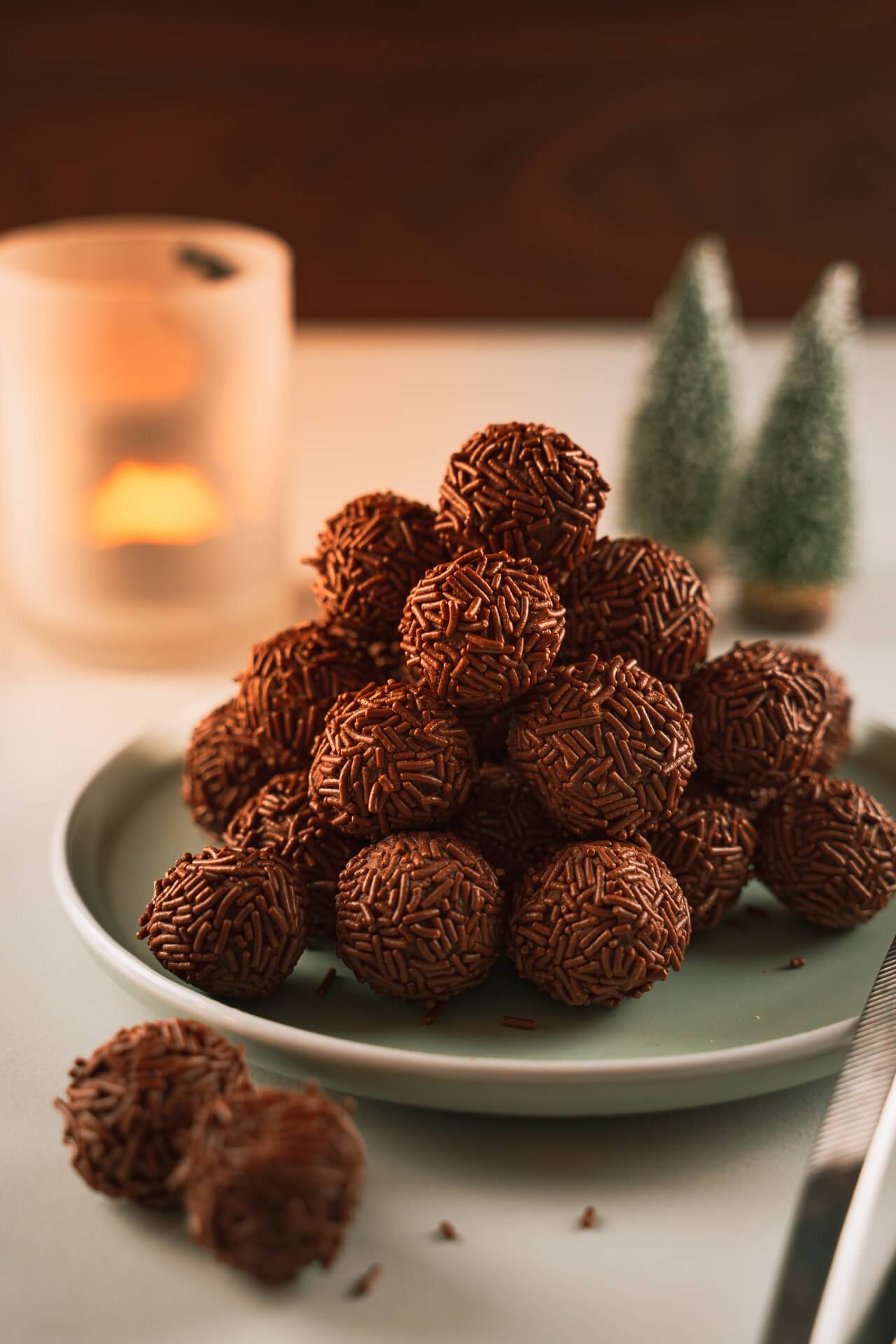 - Place the chocolate sprinkled rum balls next to each other in your prepared non reactive container
