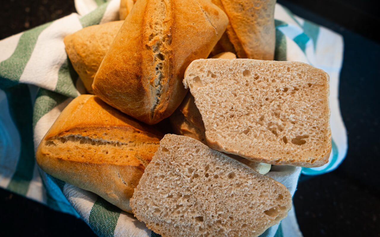 These bread rolls have a firm crust but are not too crunchy.