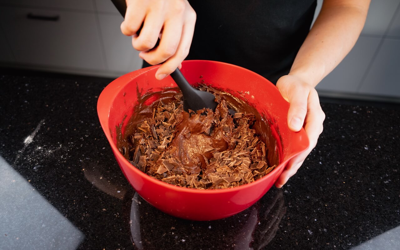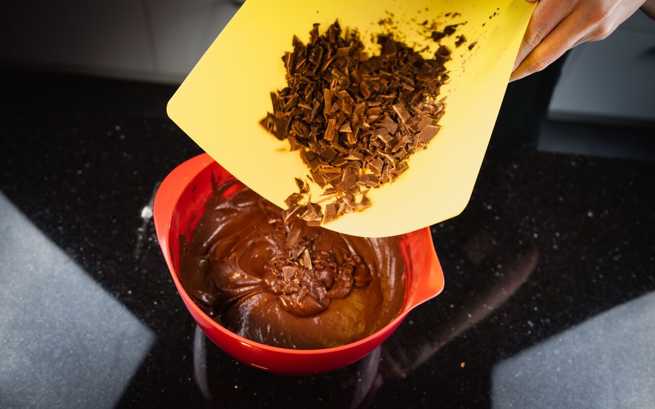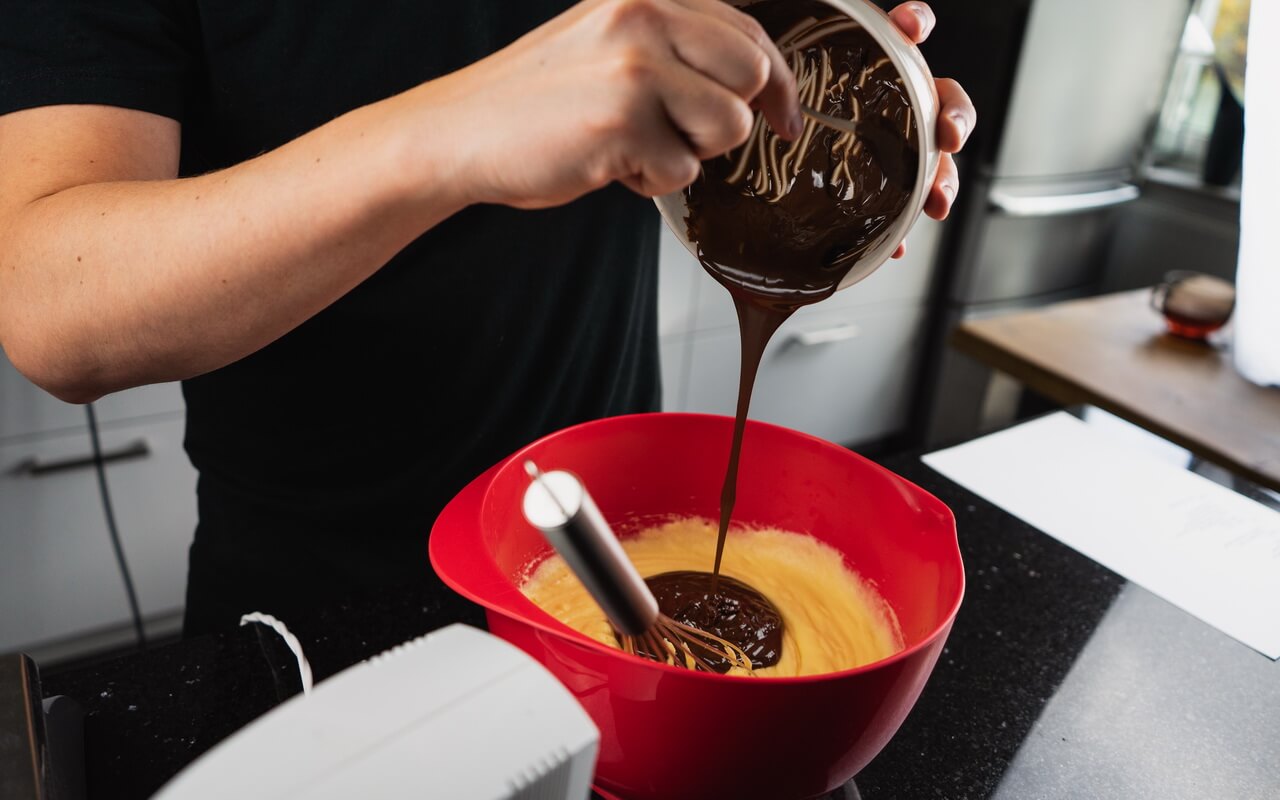 - Whisk in the melted couverture chocolate but make sure that it is not too hot or otherwise the eggs could begin to set
