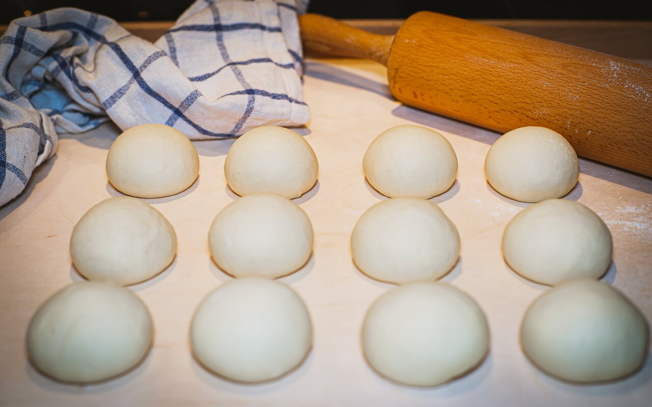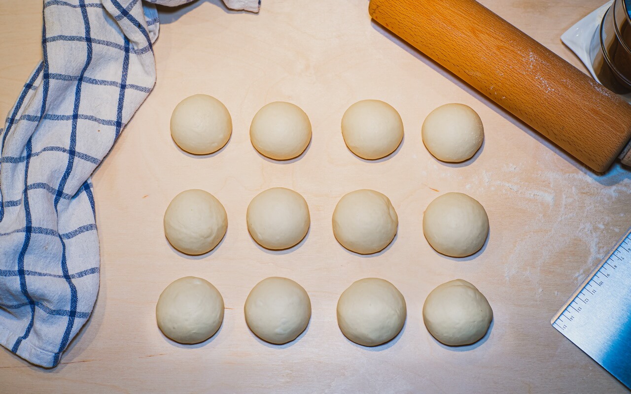 - Shape one dough piece into a small ball