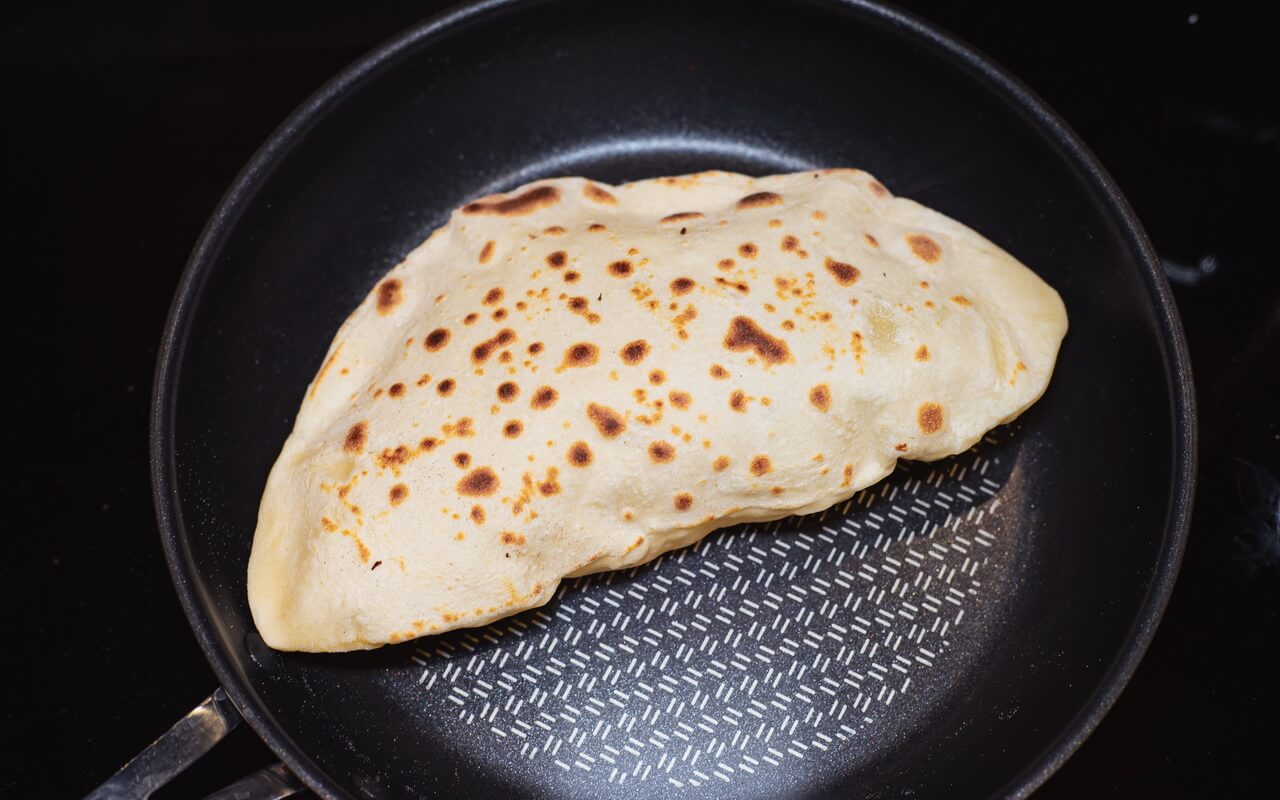 You will need a non-stick pan as we are going to bake the naan bread in it instead of using an oven. Also a rolling pin from our nice to have baking tools is recommended to get them in shape.