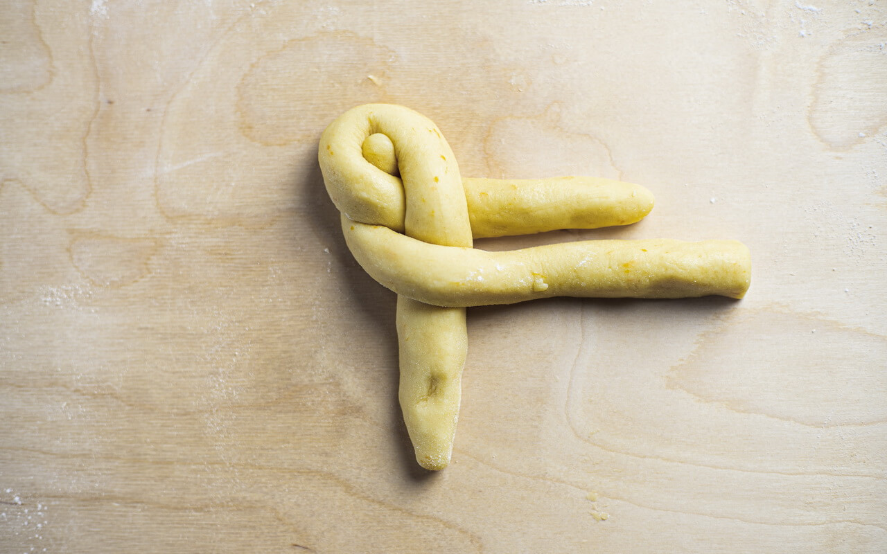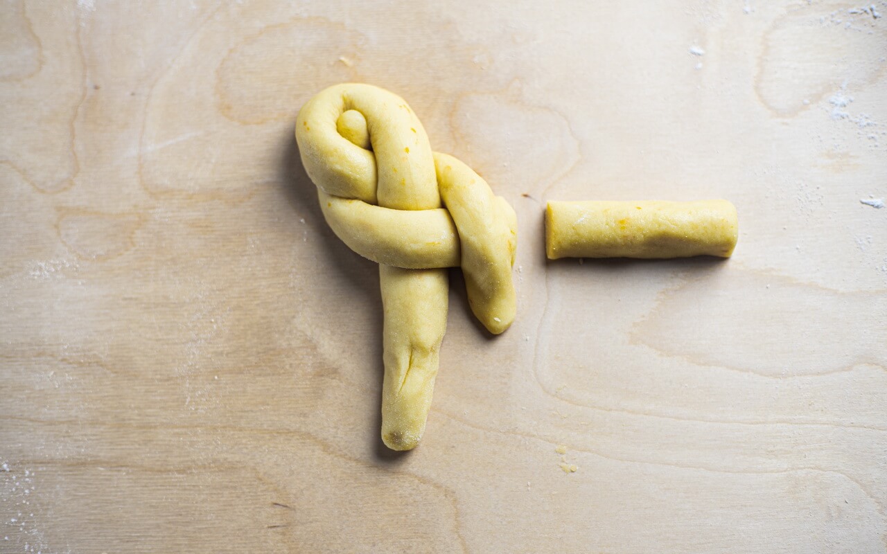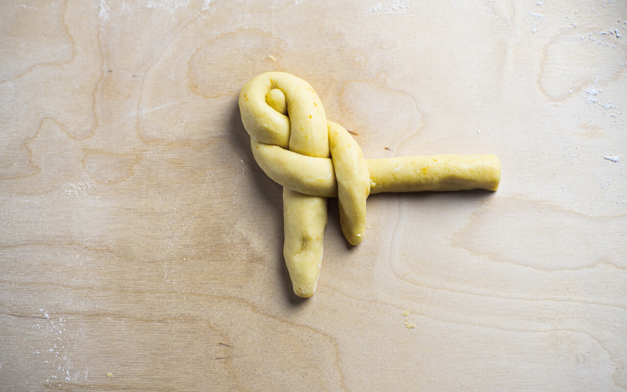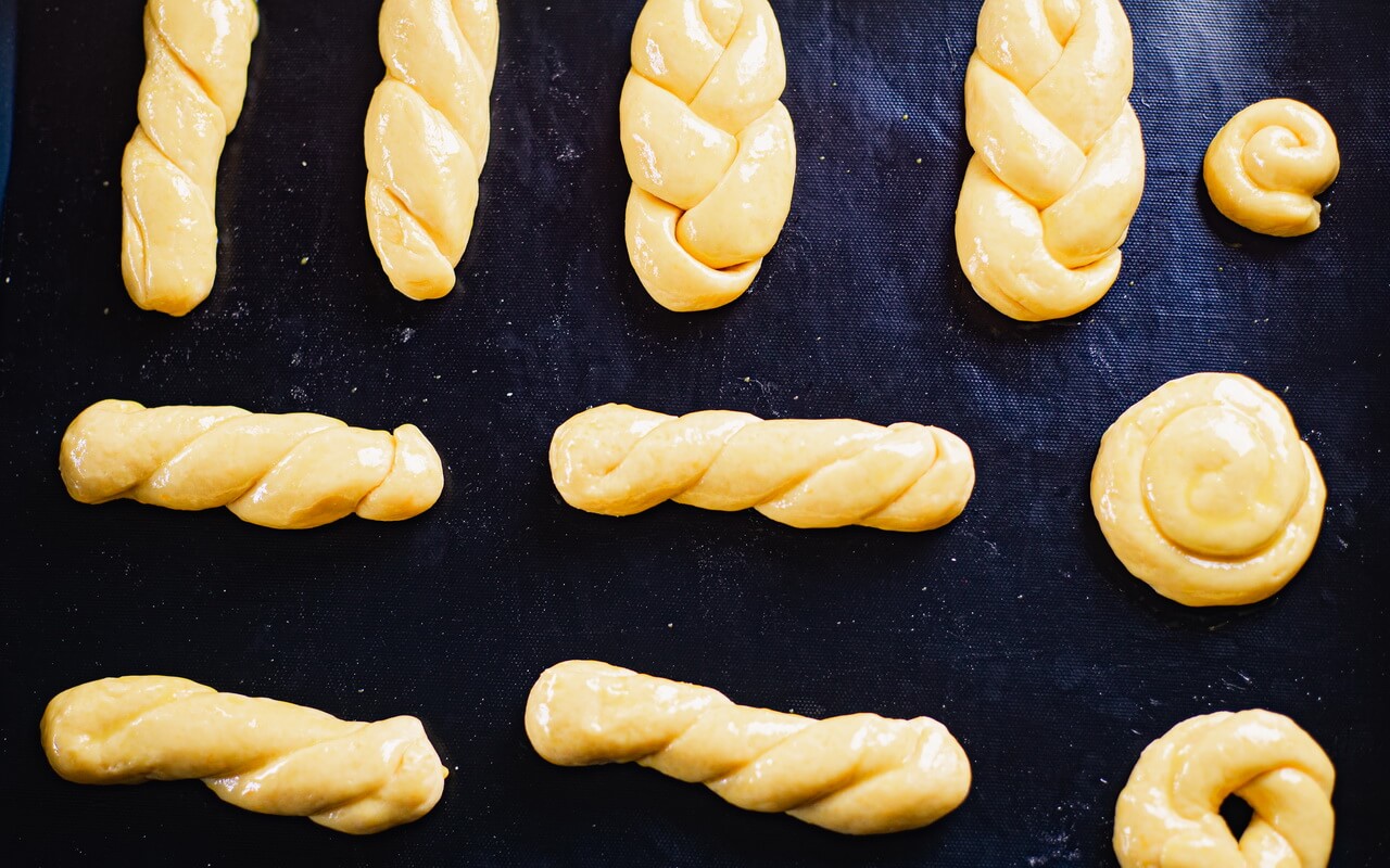 - Take one portion and shape the dough into braids, pinwheels, twists or letters