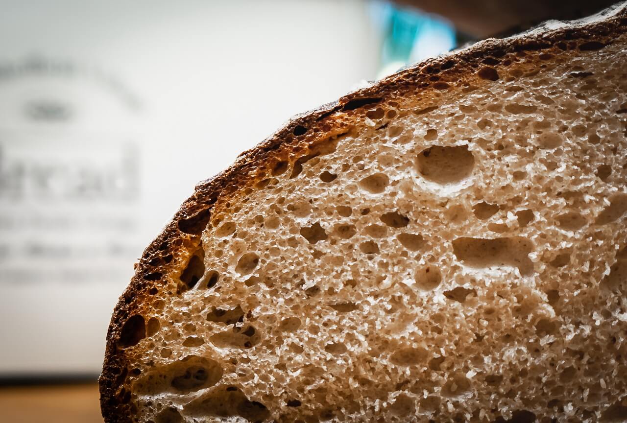 As this dark farmhouse bread is obviously very dark, you may think the crumb is extremely crunchy. Surprisingly, the crust is not that hard. It has a little and very nice crunchiness. What it has though is a very strong and rustic aroma.