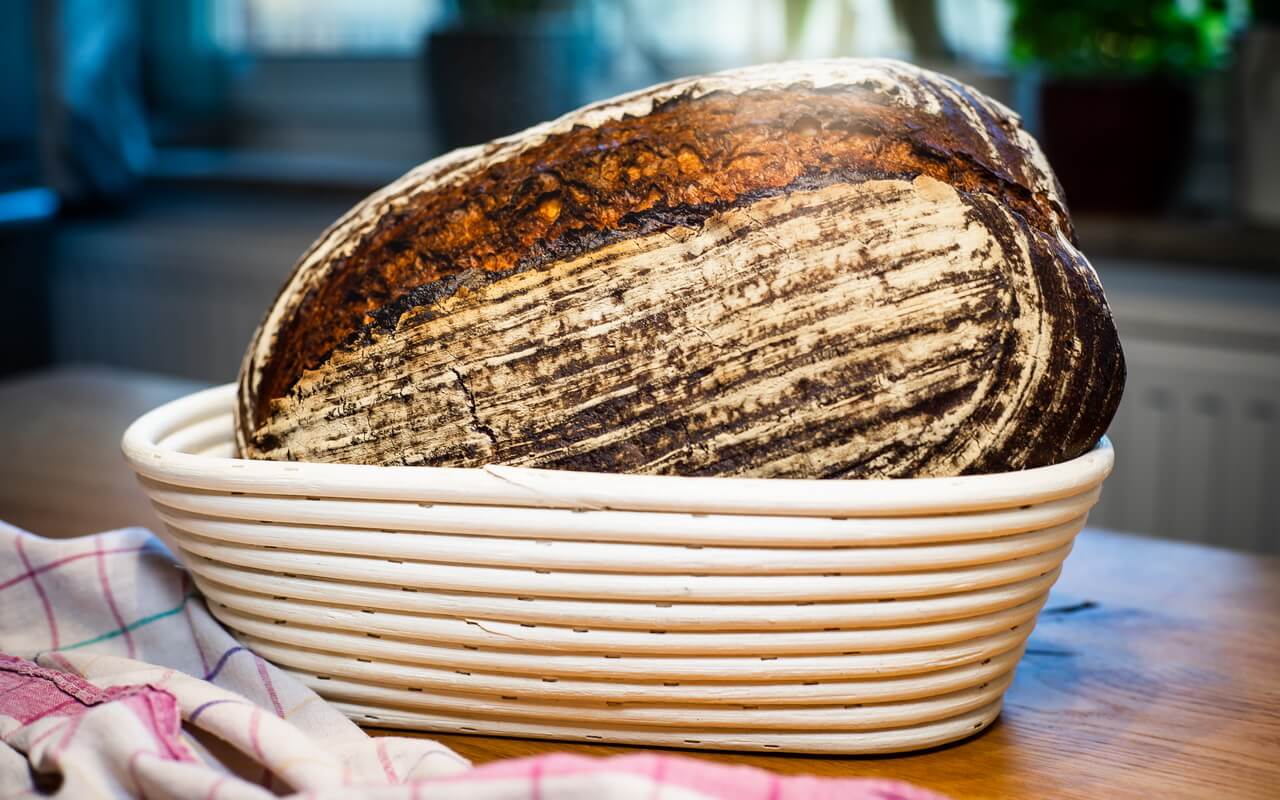 A big oval banneton proofing basket from our should have baking tools is highly recommended. Otherwise it will be very hard to get nearly 1.750 g of dough into a nice oval shape. Also use the biggest bowl you have in your kitchen for mixing the dough.