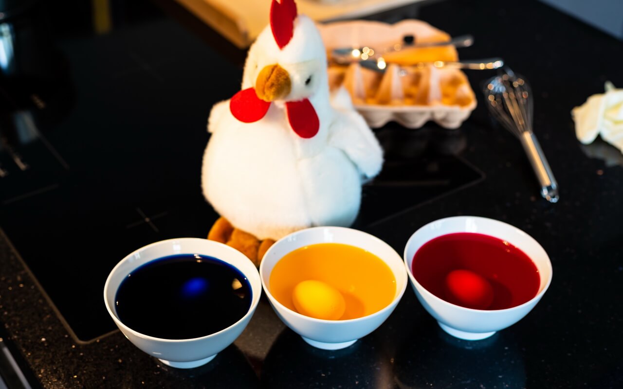- While the dough is fermenting you can start coloring your raw eggs