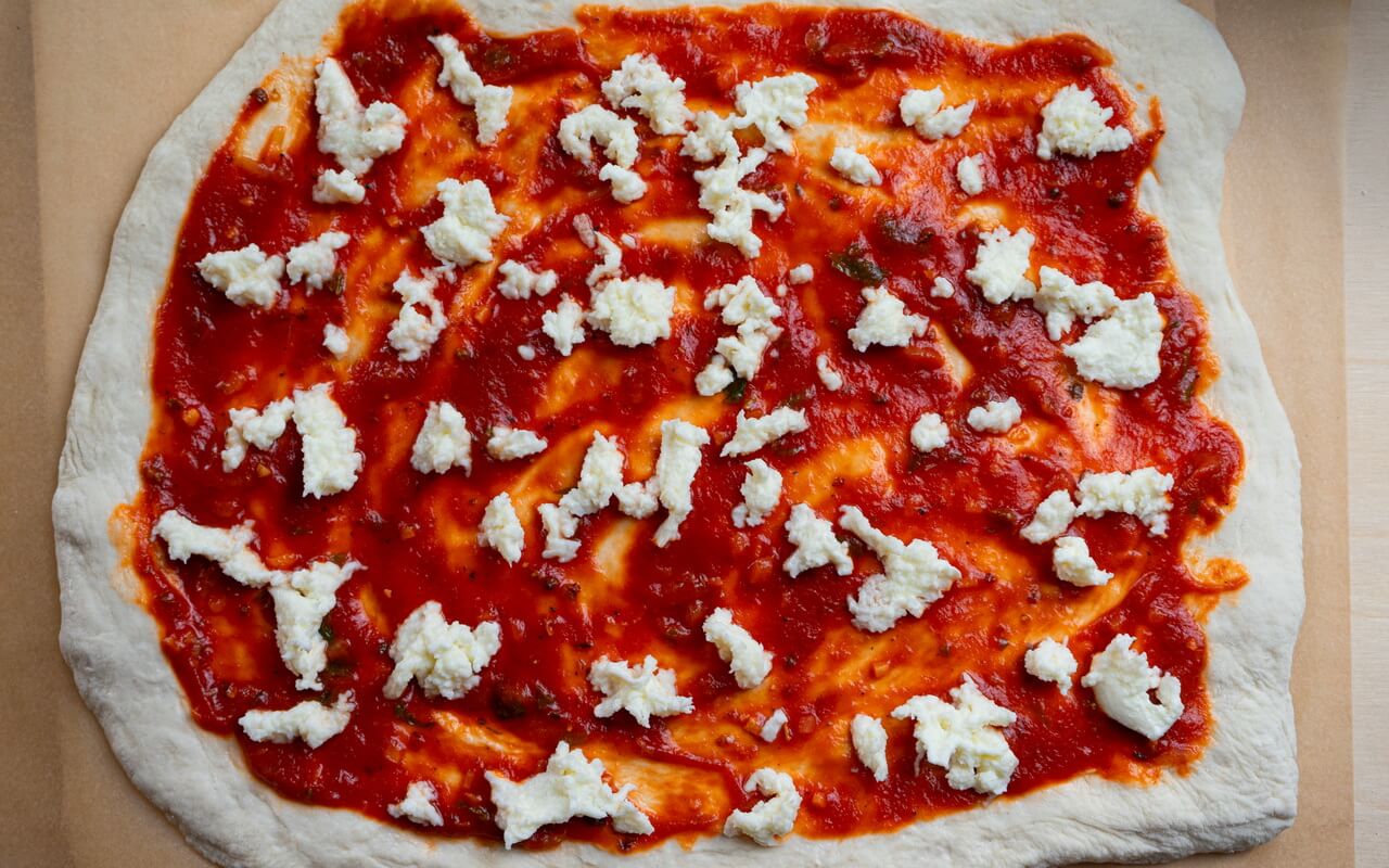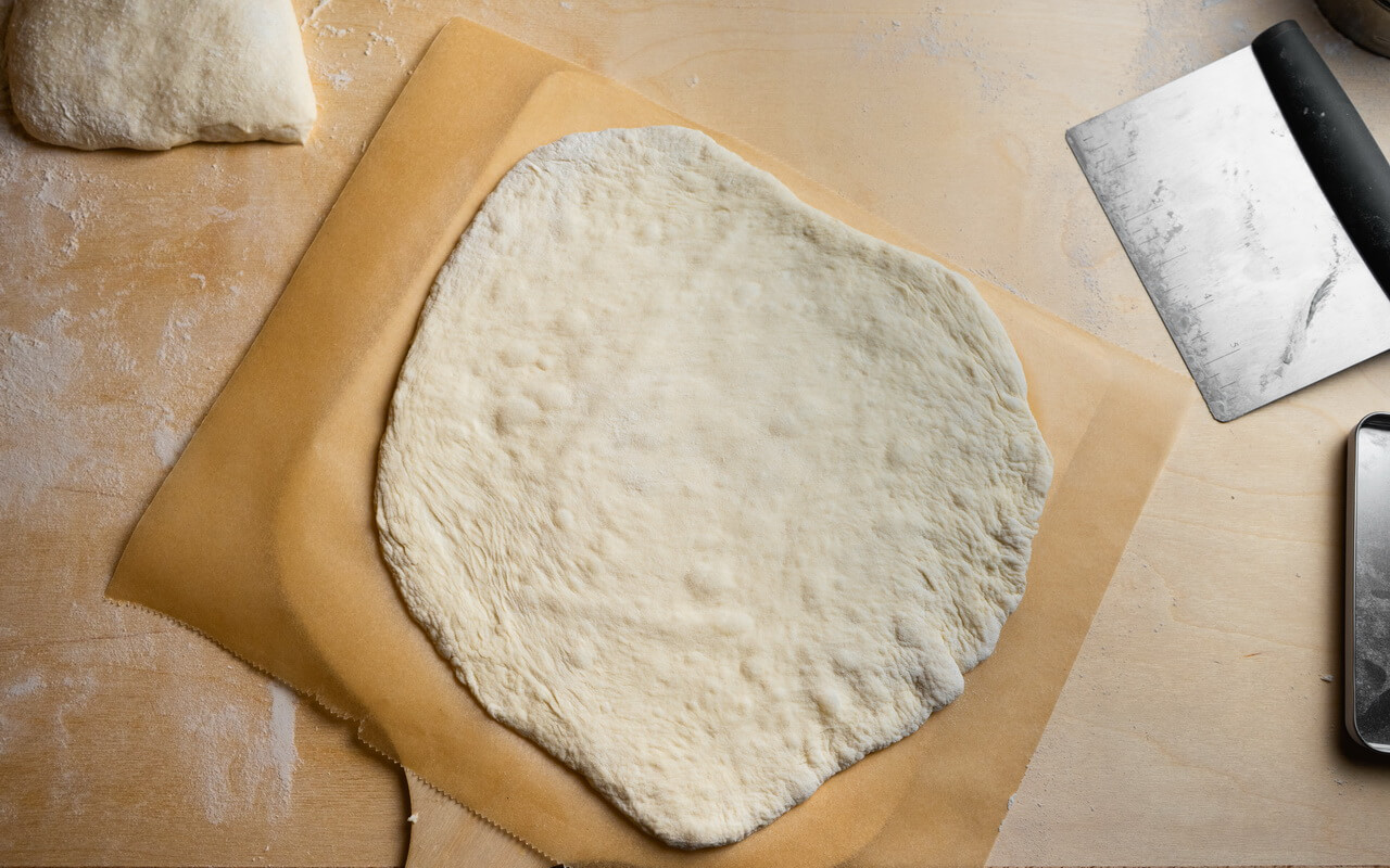- Place the shaped dough on a pizza plate covered with parchment paper