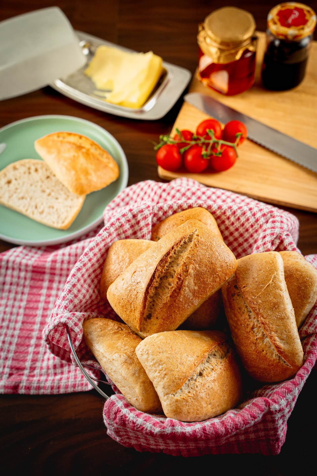 These bread rolls have a firm crust which is slightly crunchy.