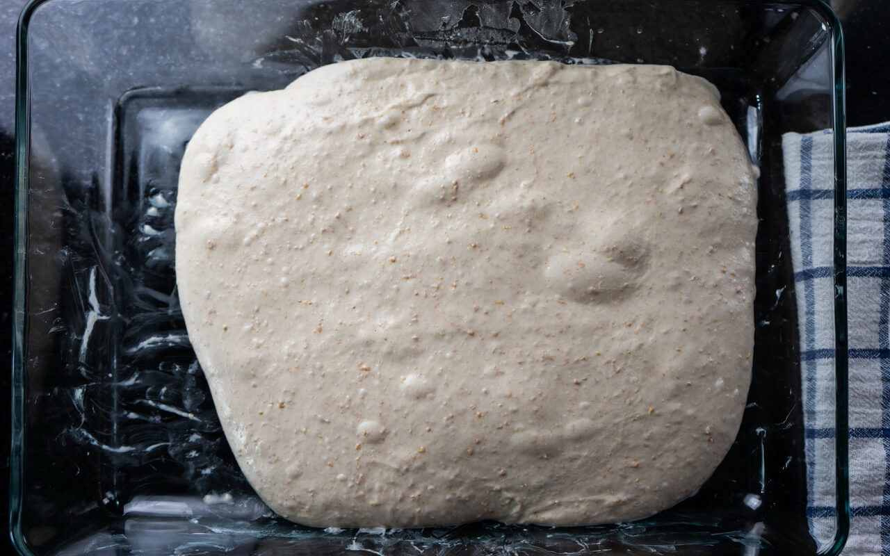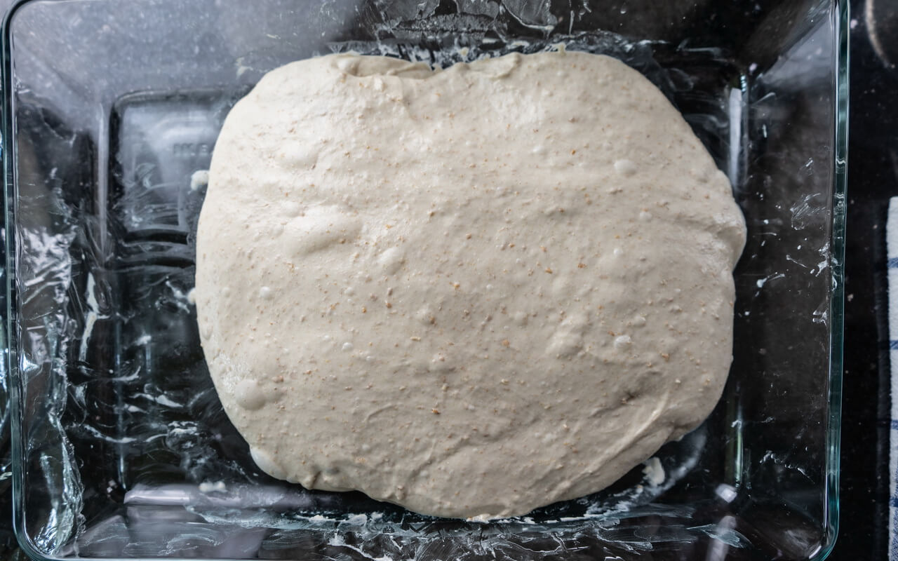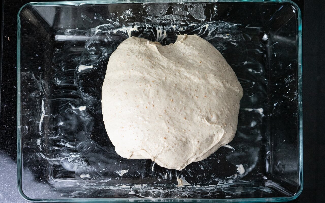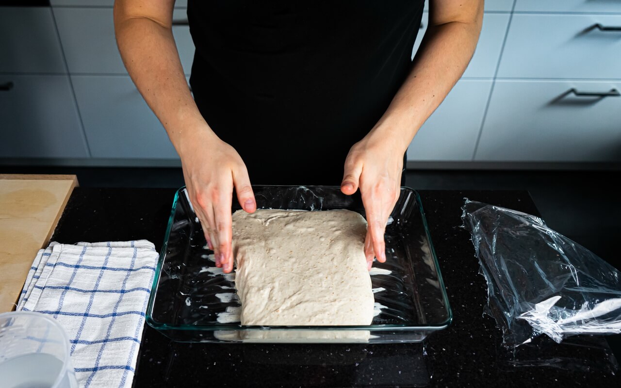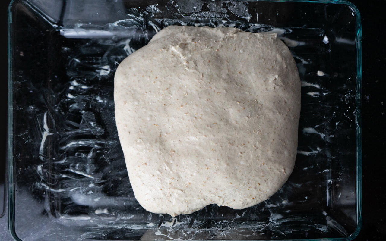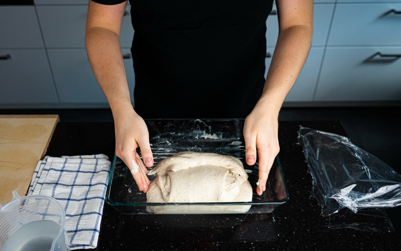 - Transfer your dough into a non-reactive container of at least 25 x 25 x 7 cm that you can seal (one made out of glass would be perfect)