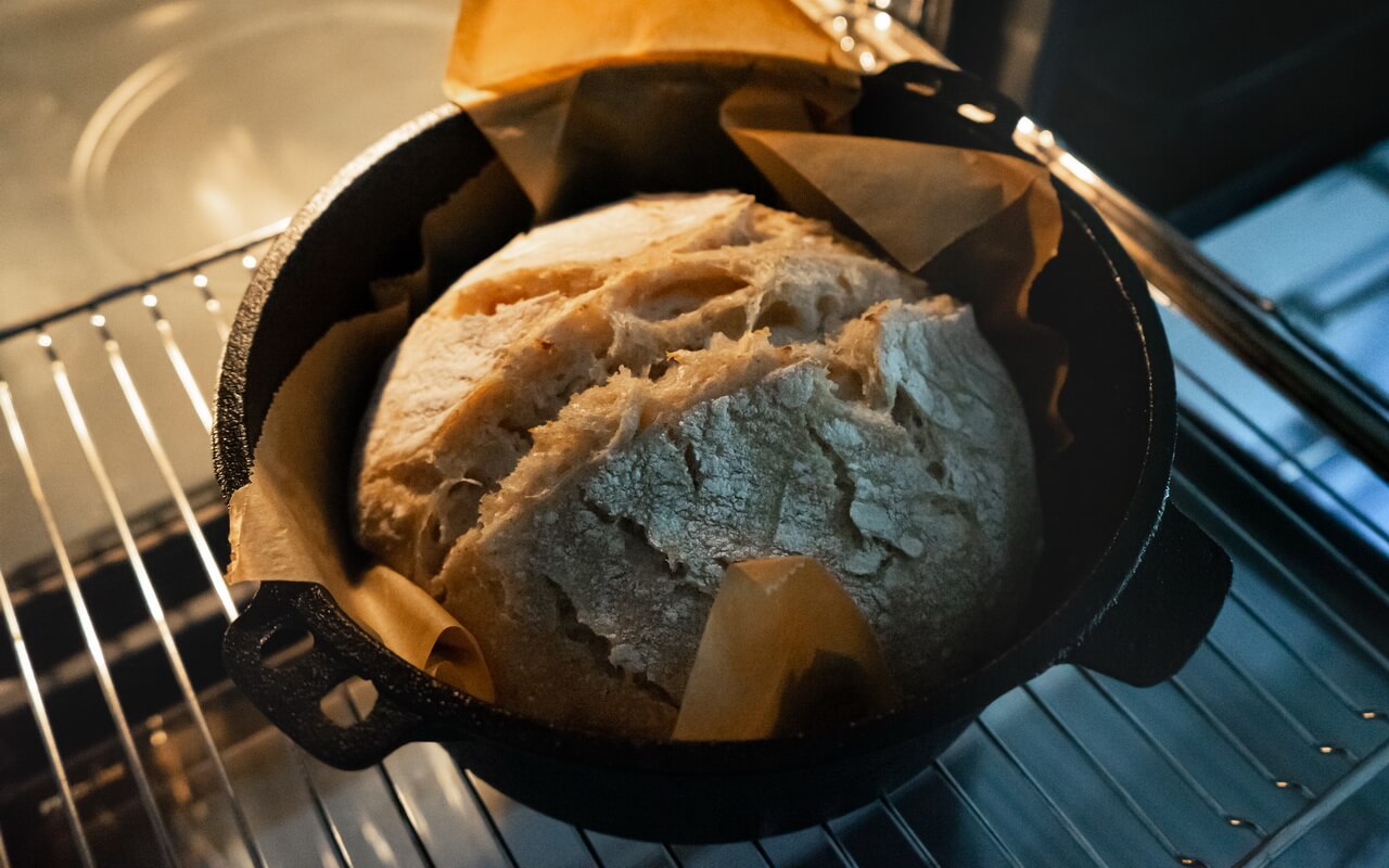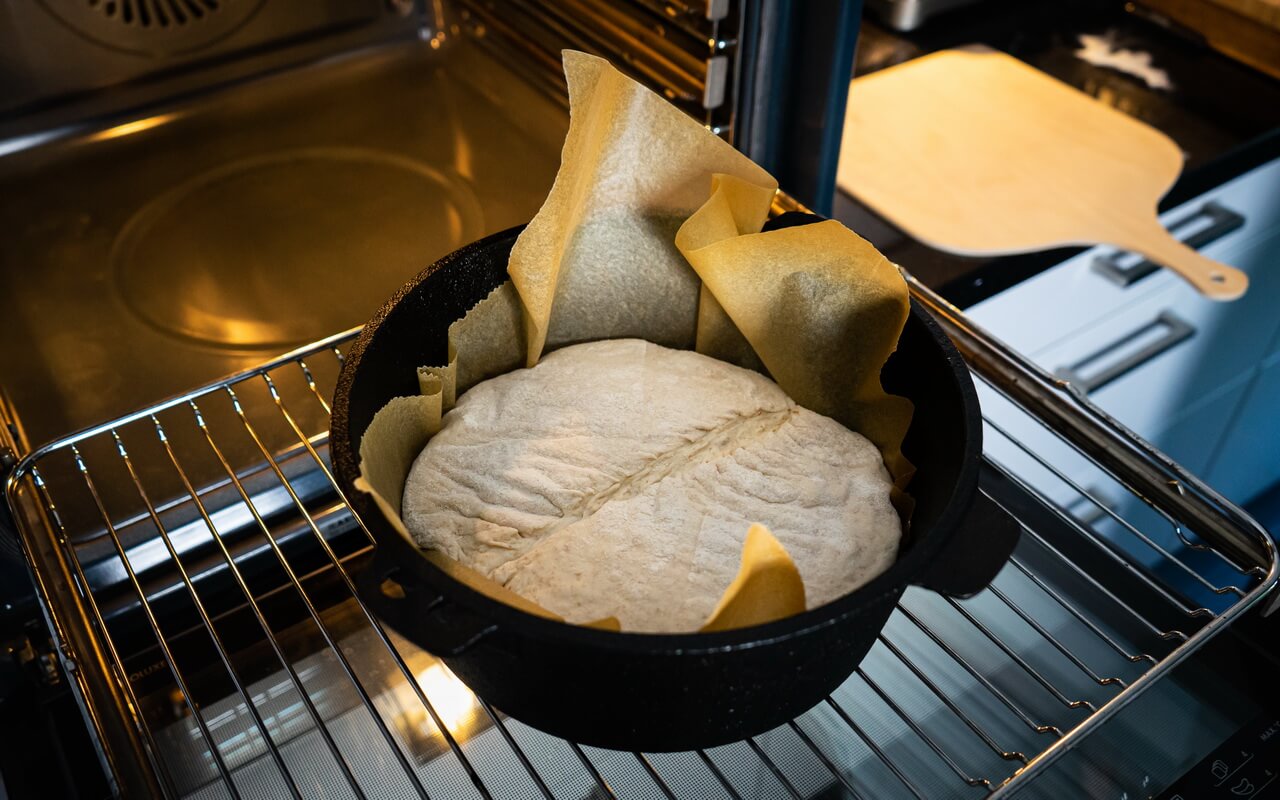 You will need a dutch oven, round banneton proofing basket that you can find in our should have baking tools and a non-reactive container of at least 25 x 25 x 7 cm (one made out of glass would be perfect).