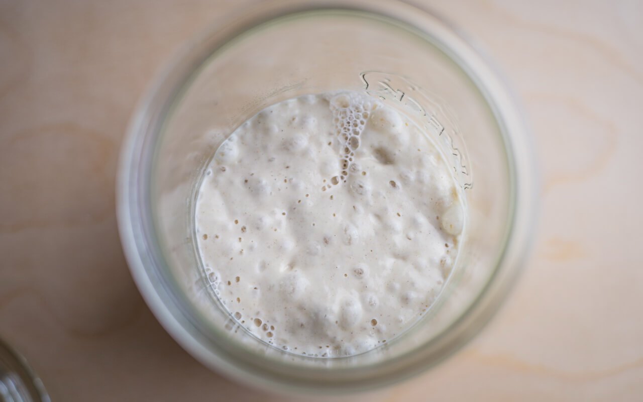 - At the bottom picture you can see how our levain looked after 12 hours (a lot of bubbles are a good sign)