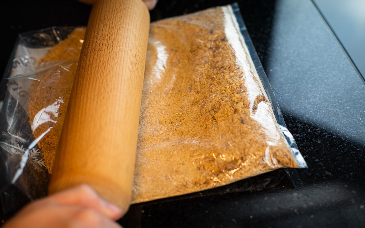 - Use a rolling pin and move it back and forth until all cookies are crumbled