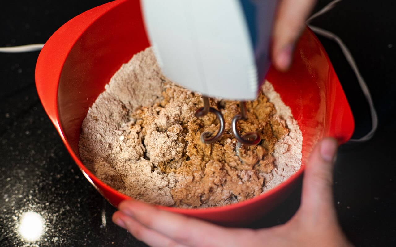 - Mix all of the mentioned ingredients together with a hand mixer using dough hooks until you get nice lumps