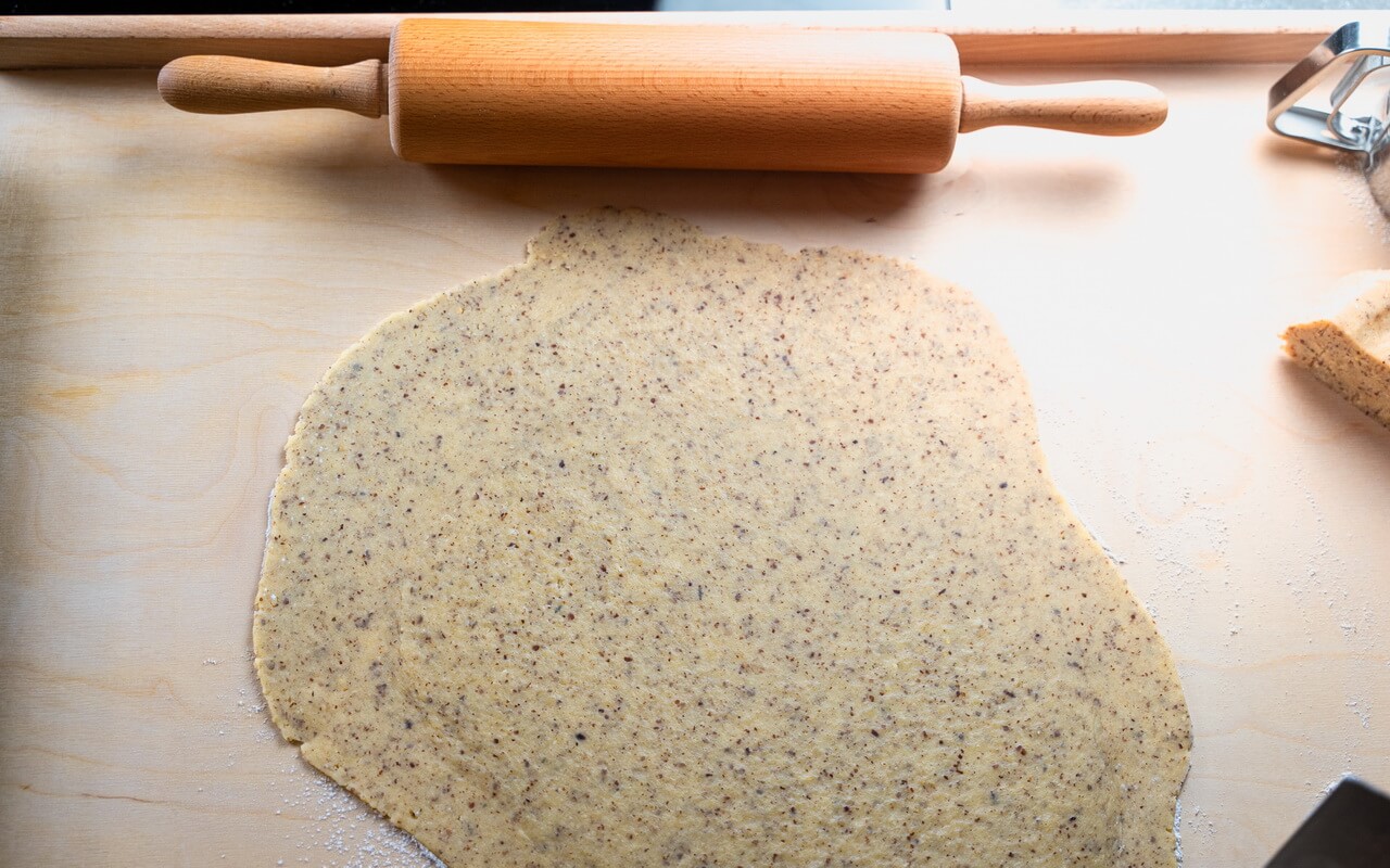 - Tip: If the dough starts sticking to the rolling pin while rolling it out, add a little all-purpose flour on top of the dough and start rolling it out further