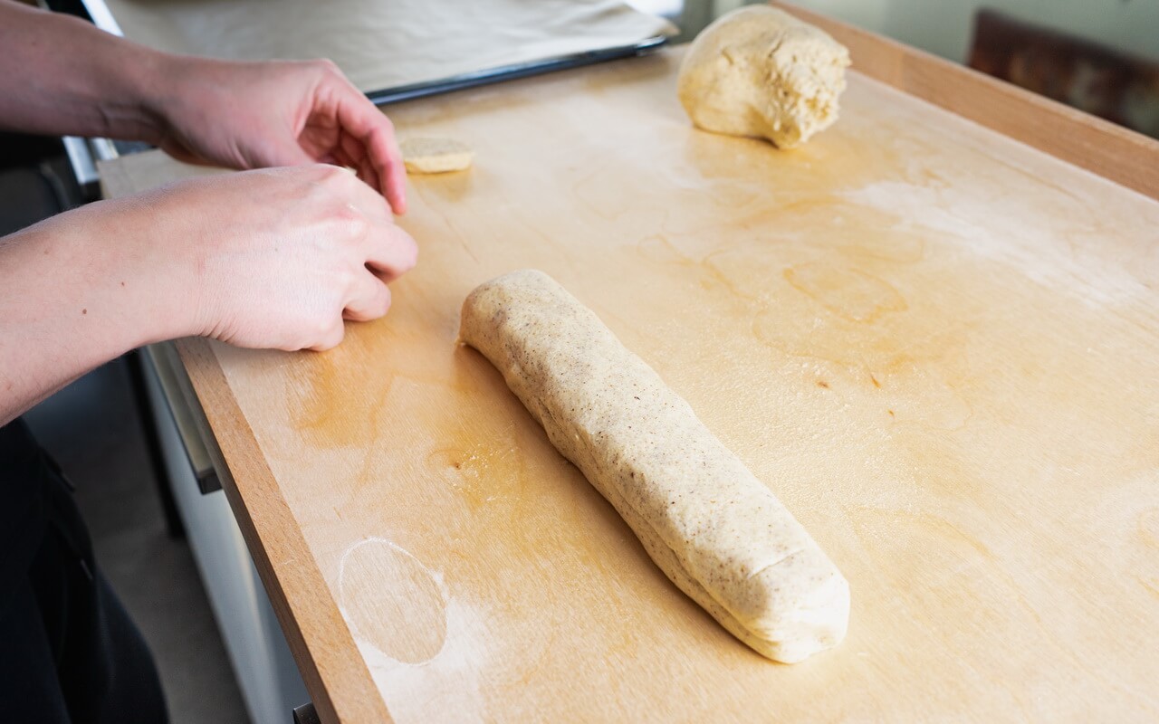 - Shape the dough into a strip with a diameter of about 4 cm