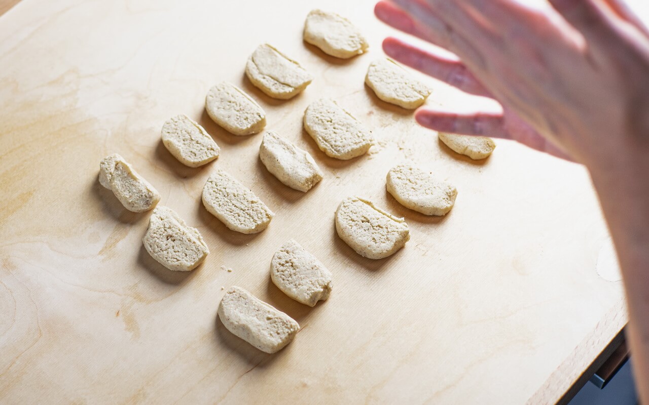 - Tip: We went for smaller cookies and cut the dough into pieces of about 1 cm per piece
