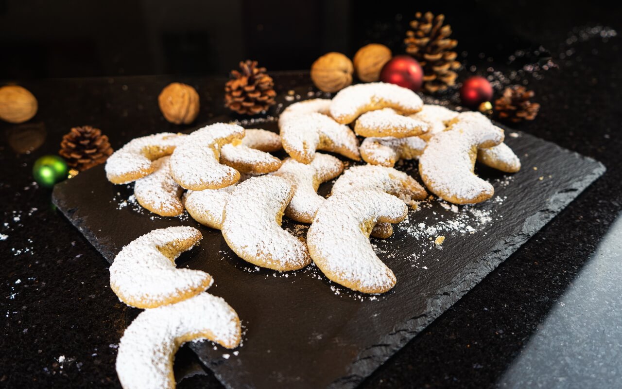 The Vanillekipferl melt in your mouth and are a perfect addition when spending a cozy afternoon in front of the fireplace.