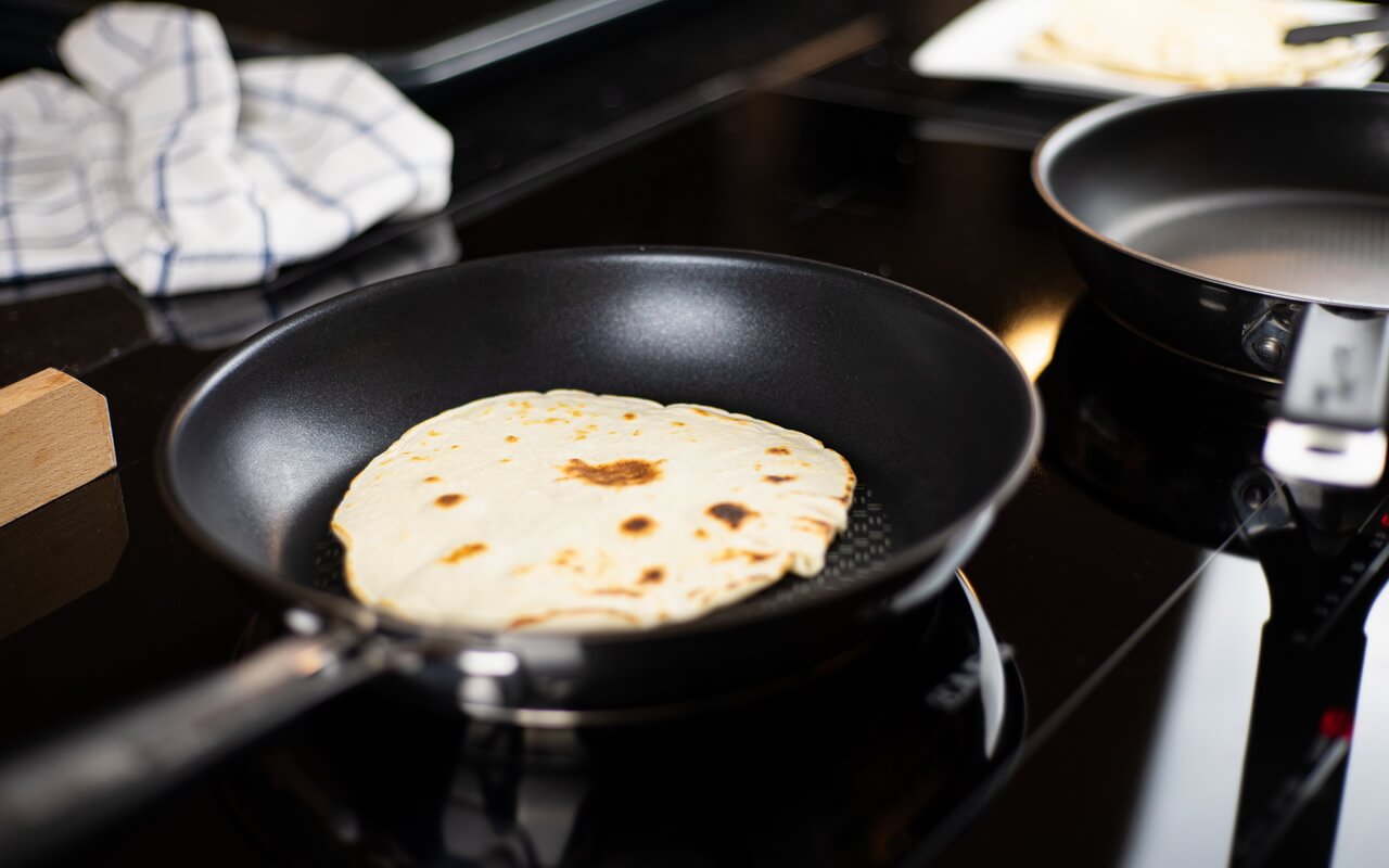 You will need a non-stick pan as we are going to bake the tortillas in it. A rolling pin from our nice to have baking tools is recommended to get them in shape.