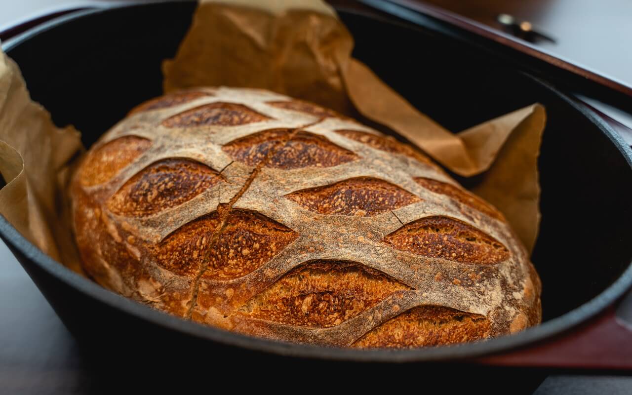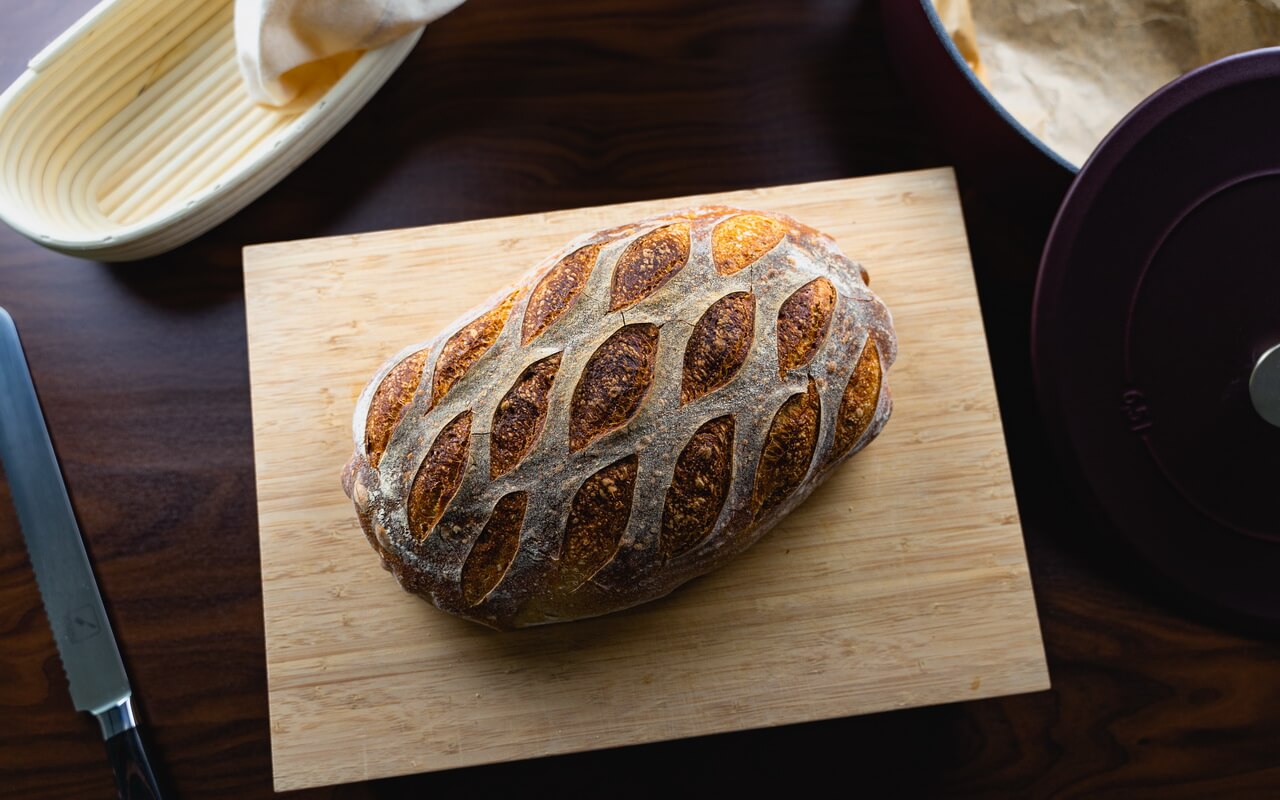 An oval banneton proofing basket is recommended and an oval dutch oven. Of course it is also fine to use a round banneton proofing basket and dutch oven.